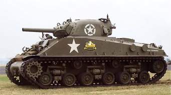 An early M4 Sherman Medium Tank. Note the similarity in the frontal armor shape with the T-34. The early Shermans had 75 millimeter guns that lacked the velocity and mass needed to penetrate the frontal armor of German tanks. |