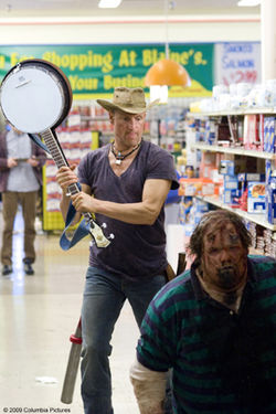 ![]() Poster for Zombieland. Woody is a little better armed with a sawed off shotgun rather than a banjo. |